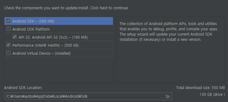 앱 개발할때 안드로이드 스튜디오 툴체인과 에뮬레이터 등이 필요하고