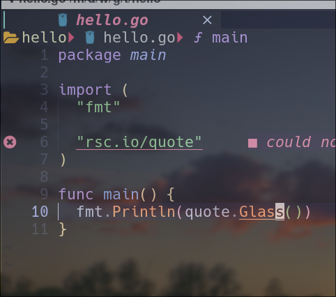 그리고 스샷의 내용을 hello.go 파일에 입력해줍니다.