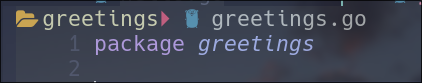 패키지를 greetings 로 선언합니다. 이 패키지가 우리가 쓸 모듈이 될겁니다.